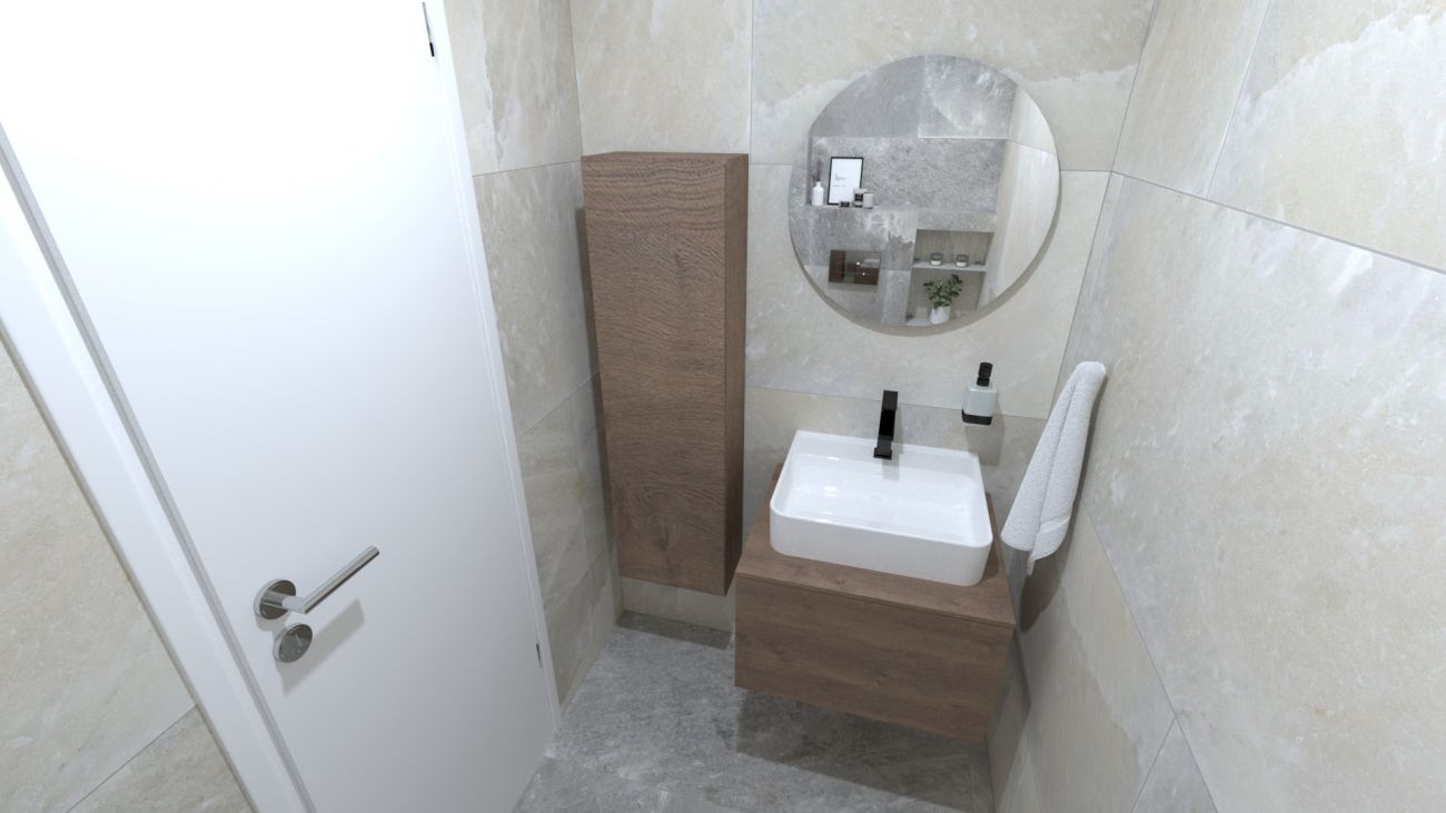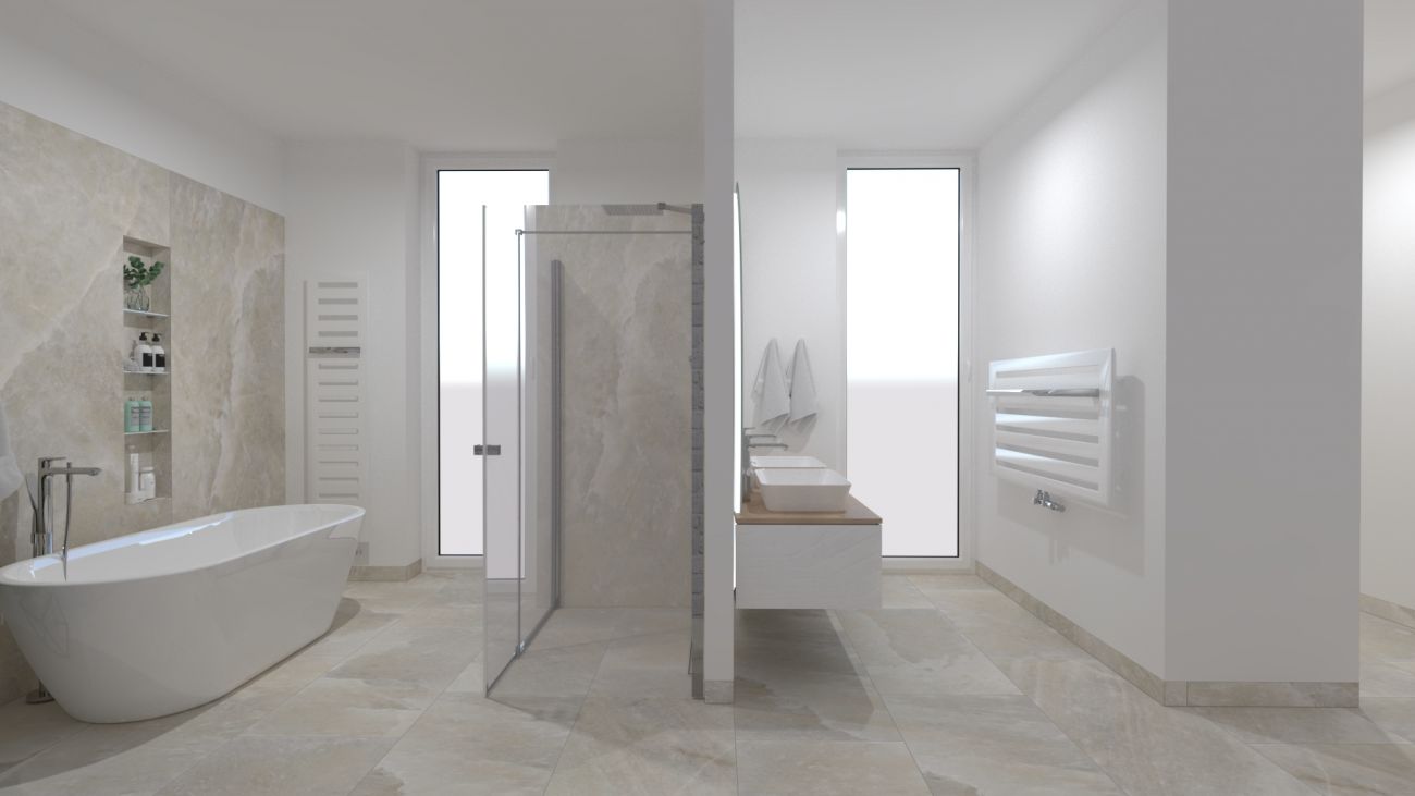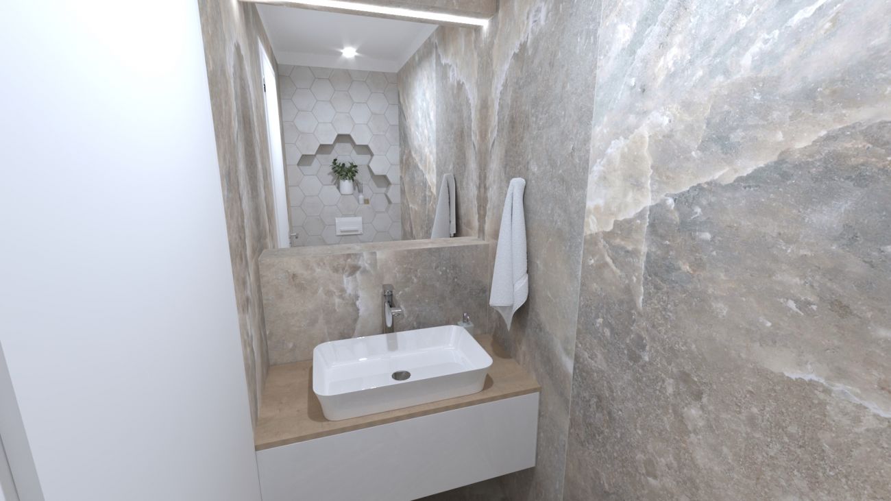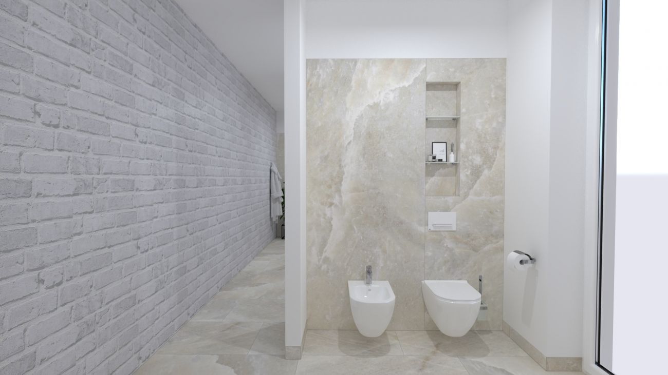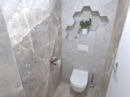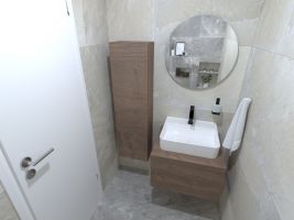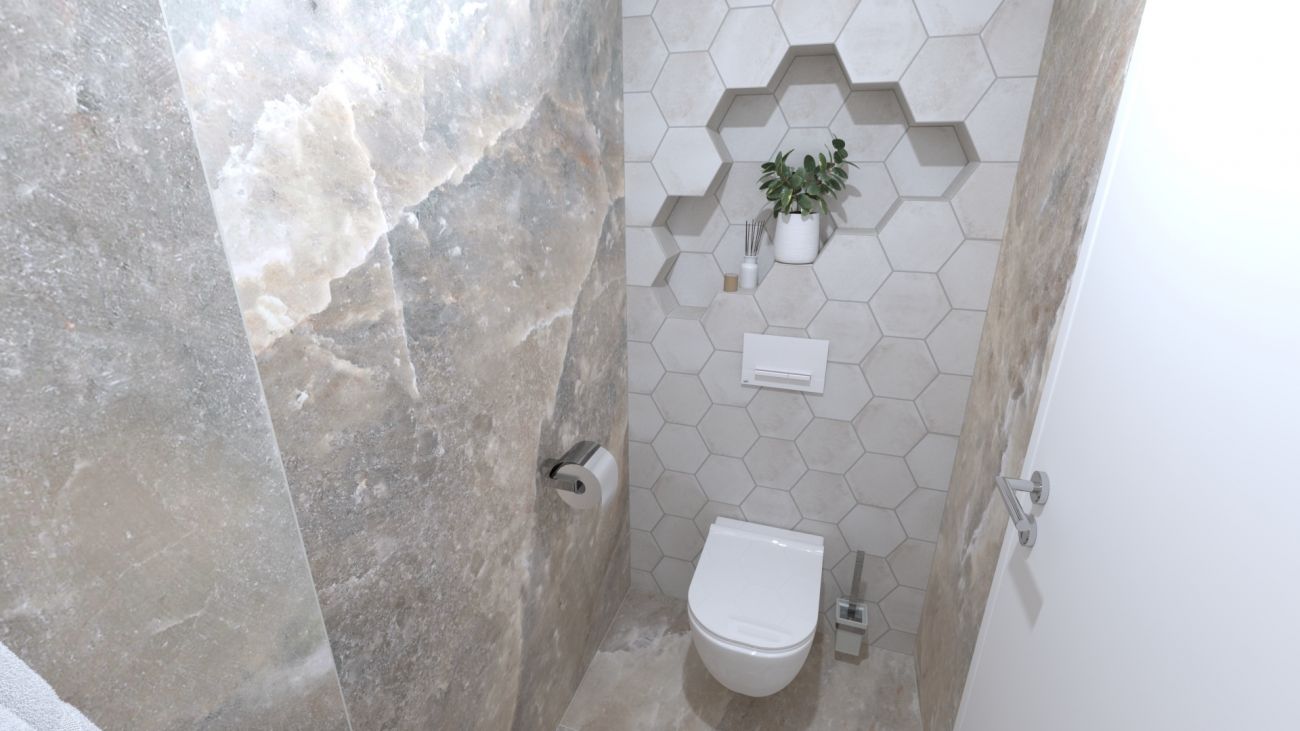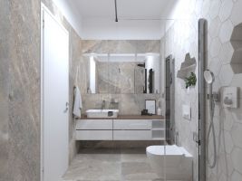Zcela výjimečná je na této sérii hluboká kresba s atmosférou přírodního kamene a také na omak je cítit struktura povrchu. Do této koupelny se hodí doplňky jako zapuštěné dvoukřídlé zrcadlo s podsvícením, skříňka schovaná ve zdi či celokeramické umyvadlo s otevřeným úložným prostorem, což dodává celé koupelně originalitu. Krásně zde vynikne i designový radiátor. Čisté linie koupelně dodávají zápustné moduly v podobě skříněk na toaletní papír či štětku na záchod. Je to velmi designová ale i hygienická záležitost.