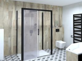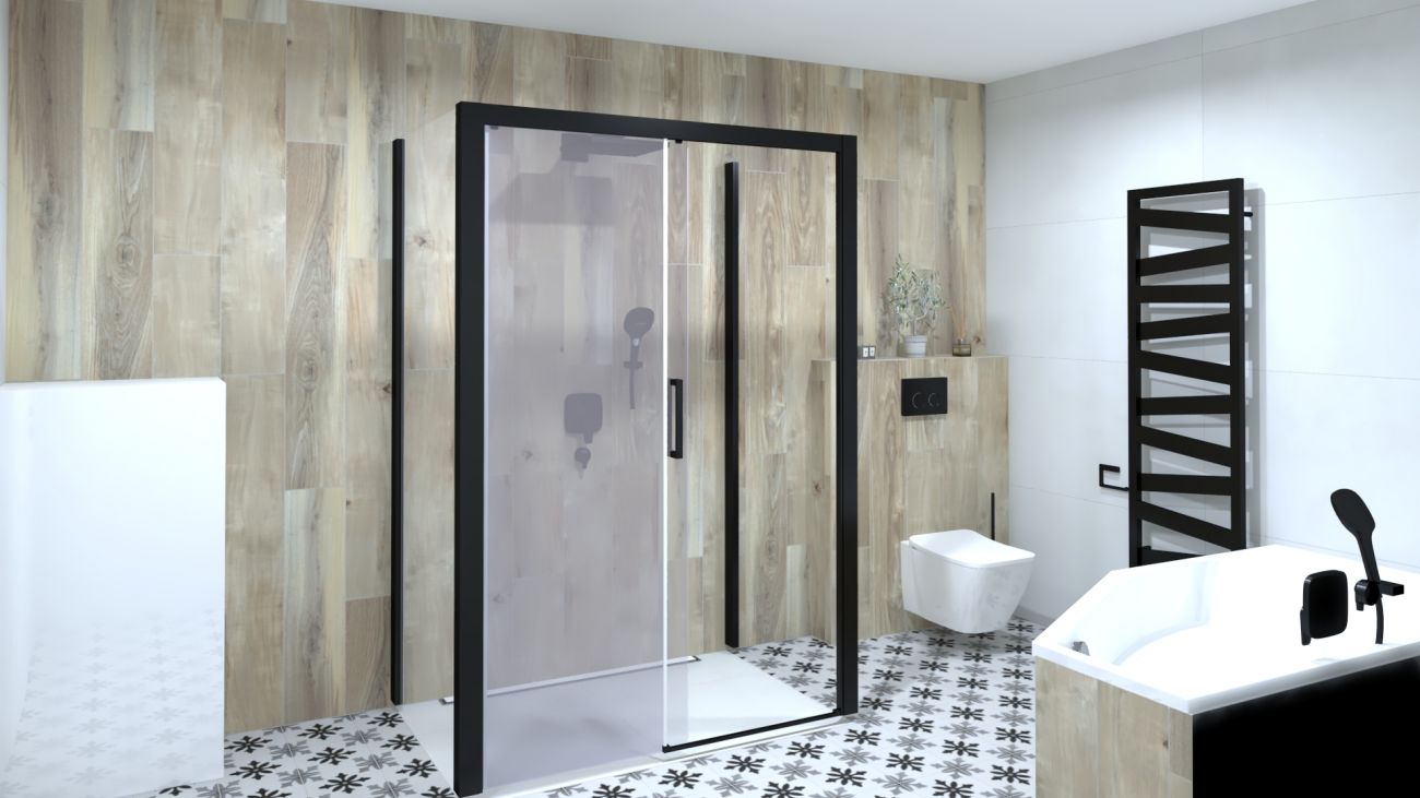 Do této koupelny se hodí sprchový kout, v našem případě se jedná o prosklenou bezrámovou posuvnou variantu se zapuštěnou vaničkou v podlaze. Díky neviditelnému spárování vznikne čistá sprchovací zóna. Velmi originální je pak doplněk v podobě nástěnného boxu na uschování mobilního telefonu.