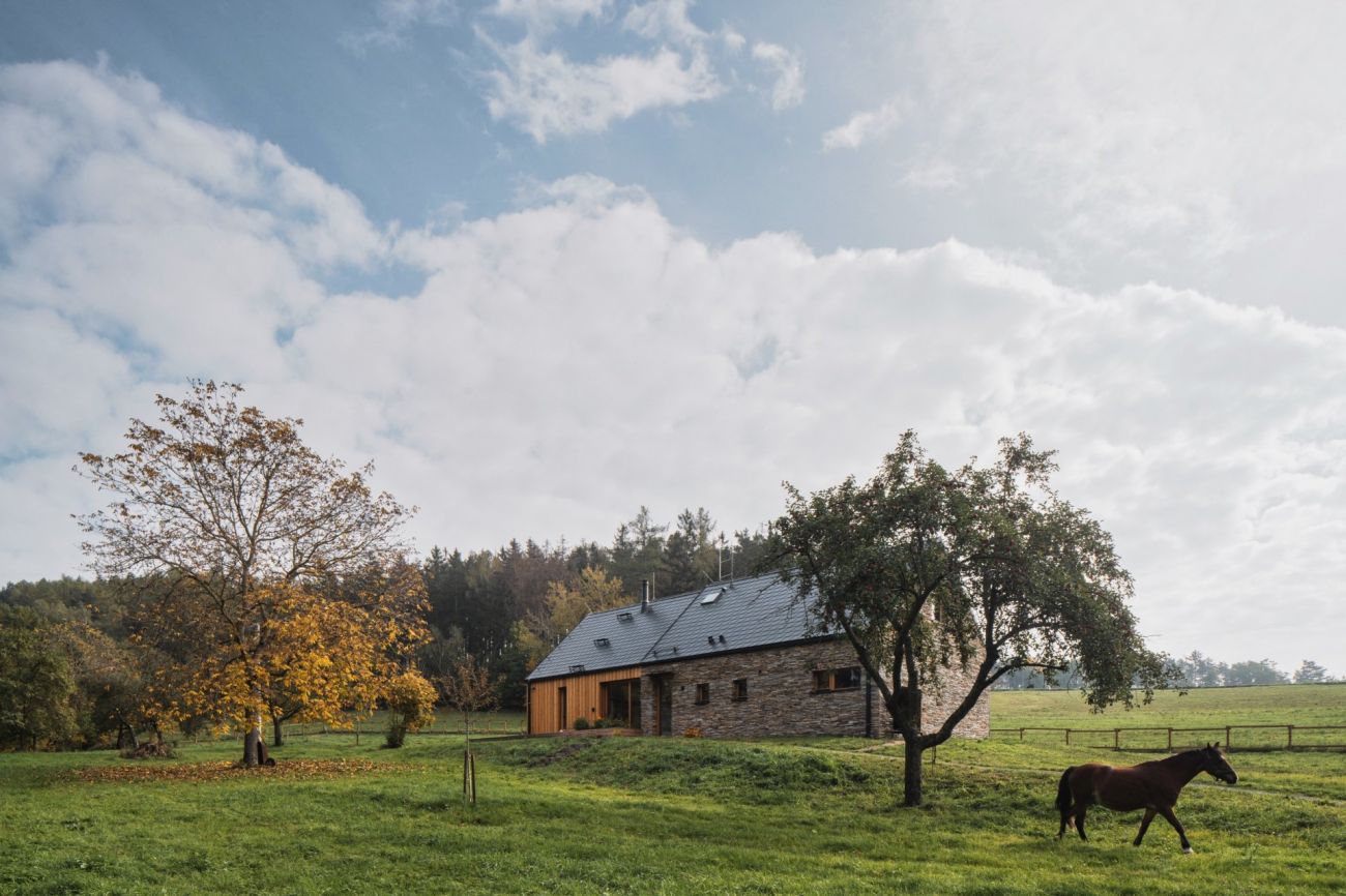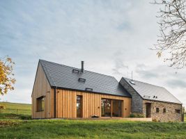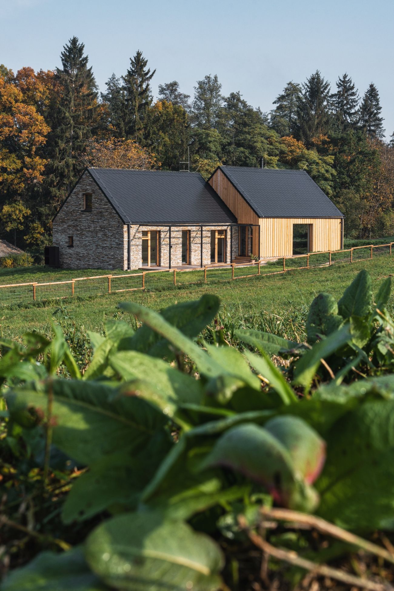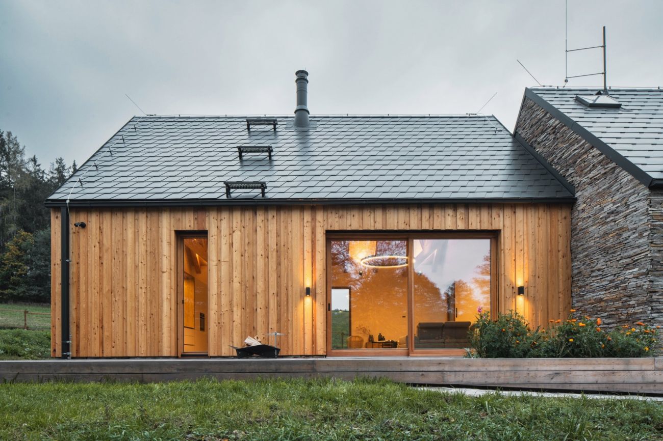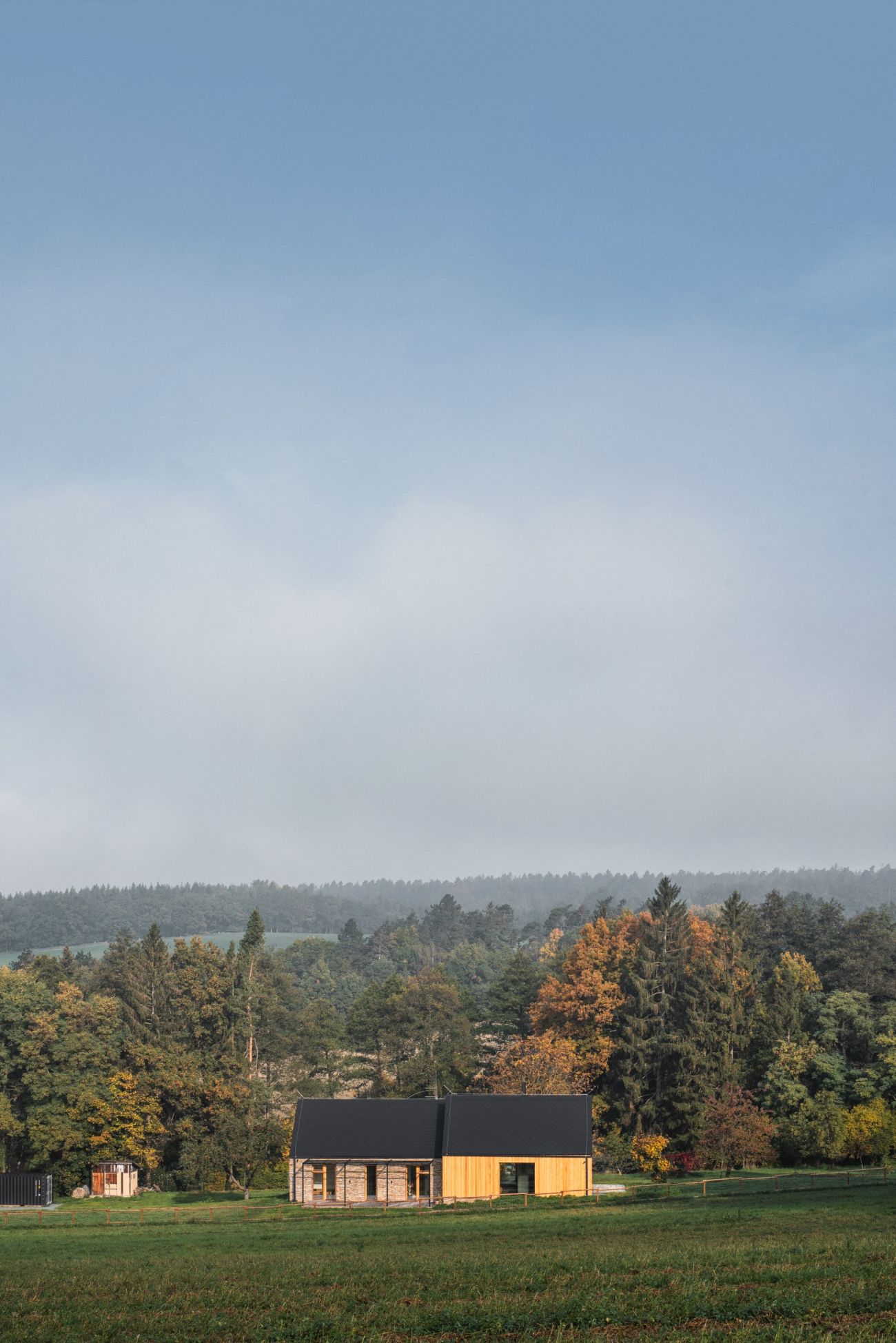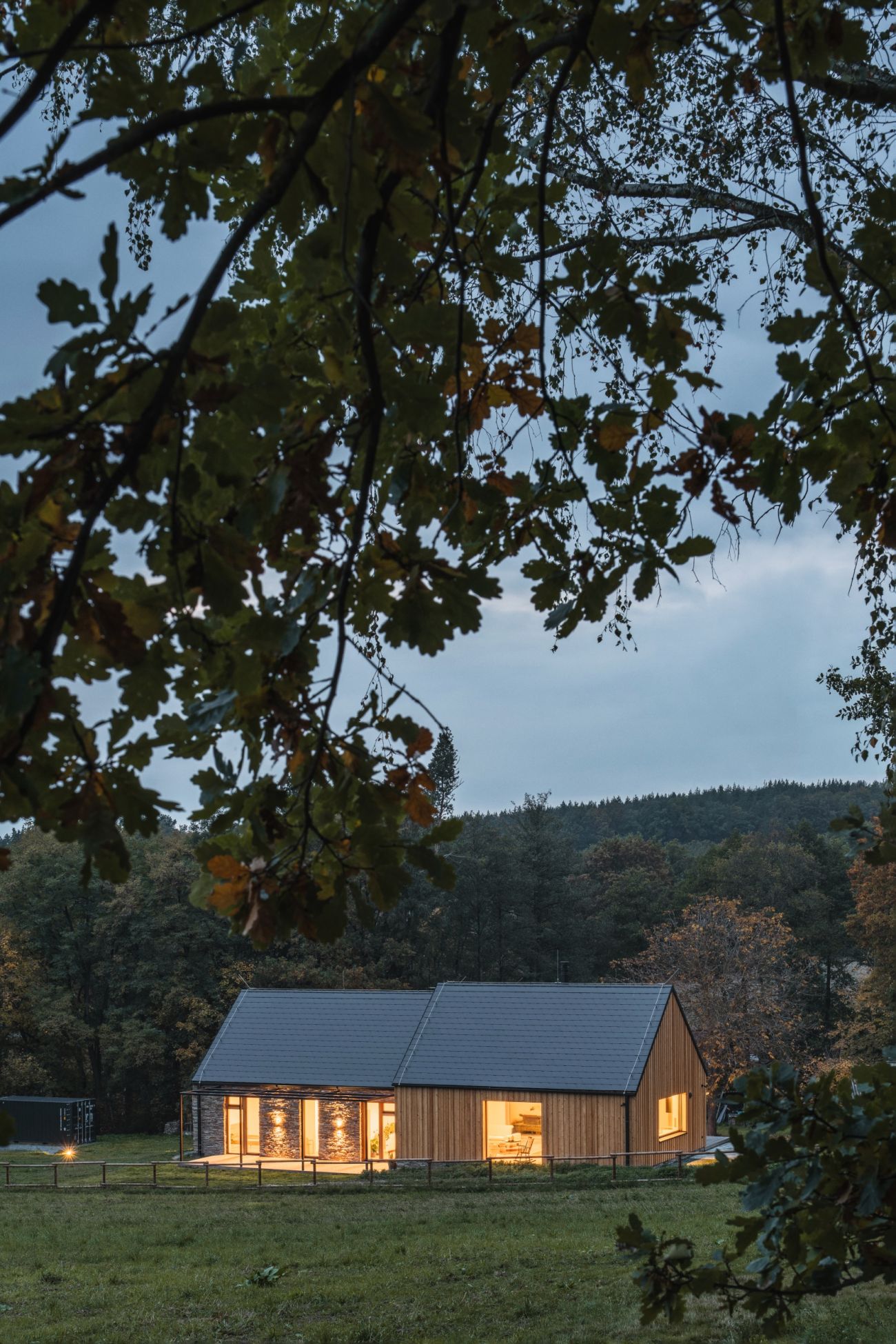 Kousek za Plzní se na louce v blízkosti lesa nachází menší rodinný dům, který by těžko mohl stát jinde. Stavba dokonale využívá atmosféru místa a přizpůsobuje se jí jak tvarem, tak i zvolenými materiály. Za návrhem stojí architekt Lukáš Janout, který zde vytvořil pro své klienty moderní bydlení.