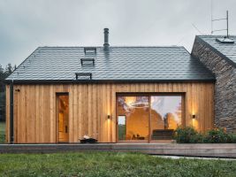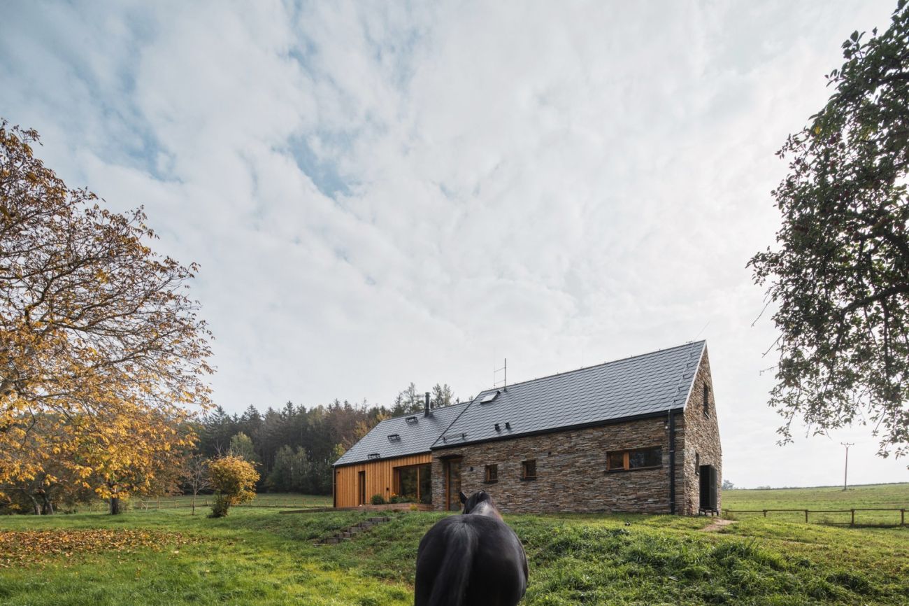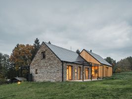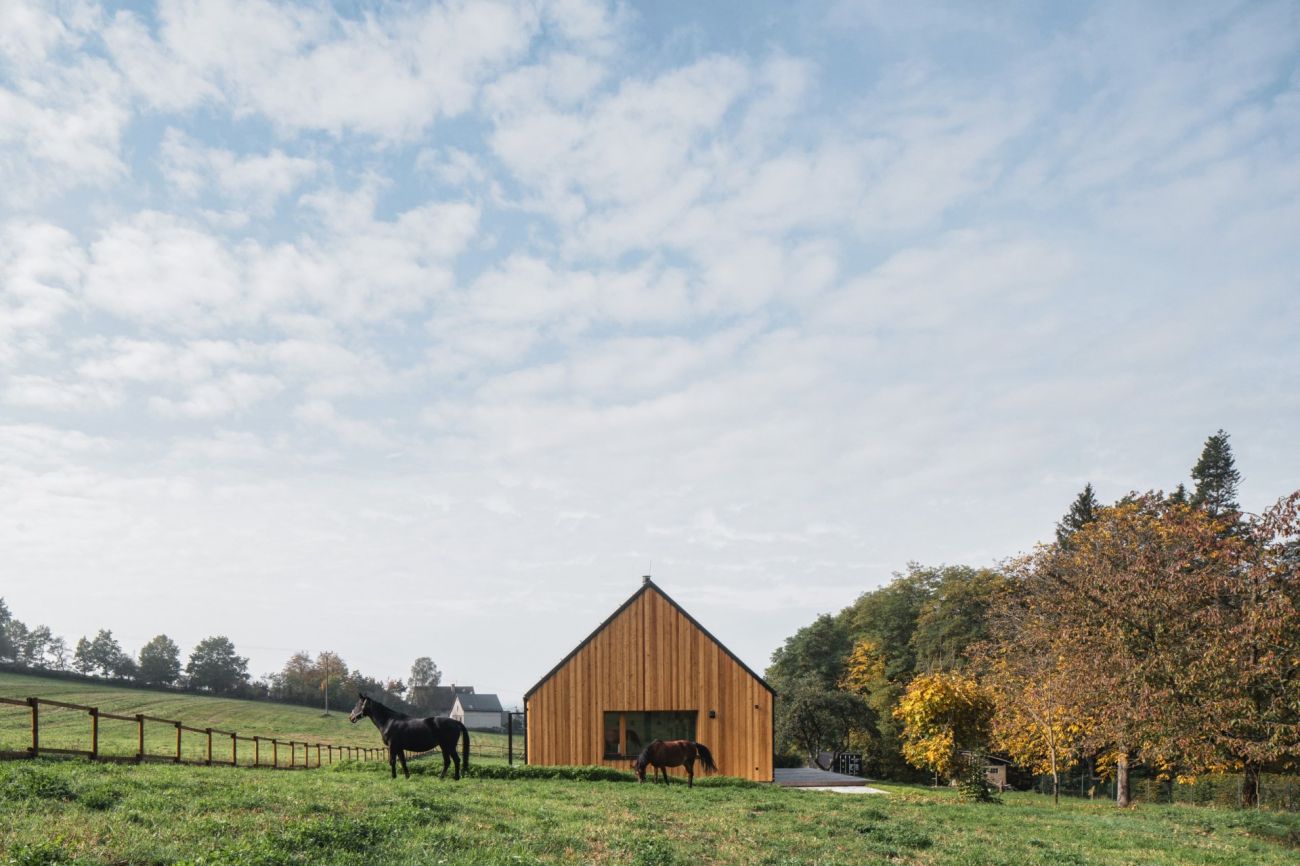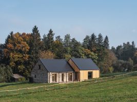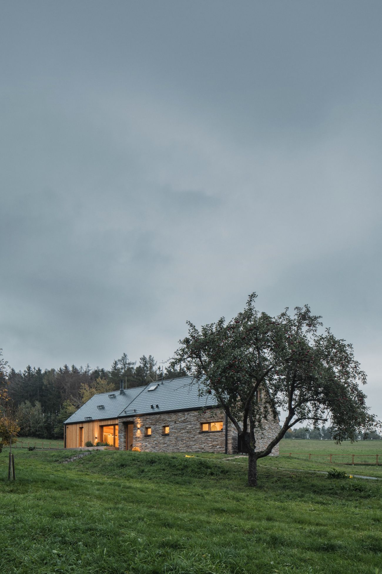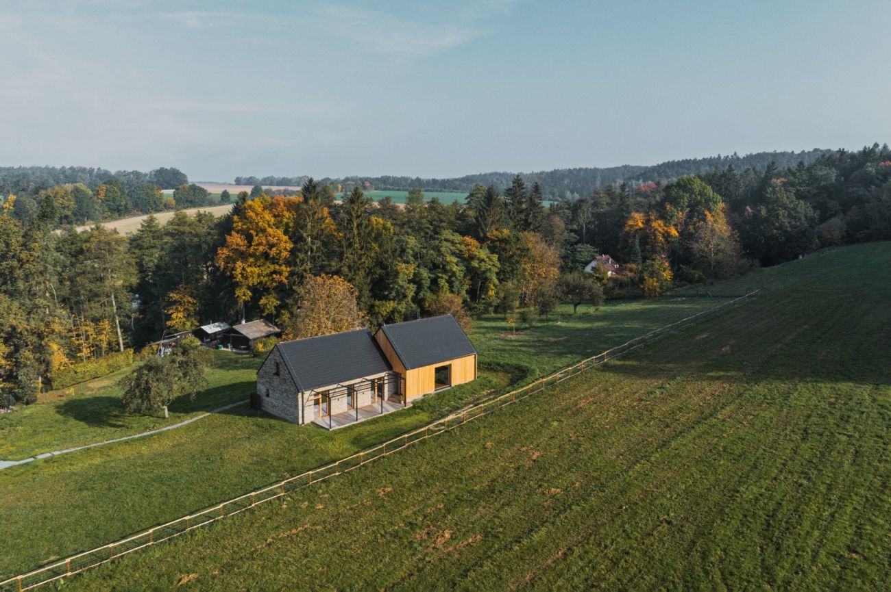 Kousek za Plzní se na louce v blízkosti lesa nachází menší rodinný dům, který by těžko mohl stát jinde. Stavba dokonale využívá atmosféru místa a přizpůsobuje se jí jak tvarem, tak i zvolenými materiály. Za návrhem stojí architekt Lukáš Janout, který zde vytvořil pro své klienty moderní bydlení.