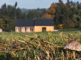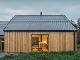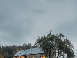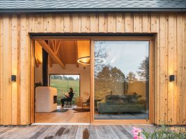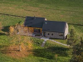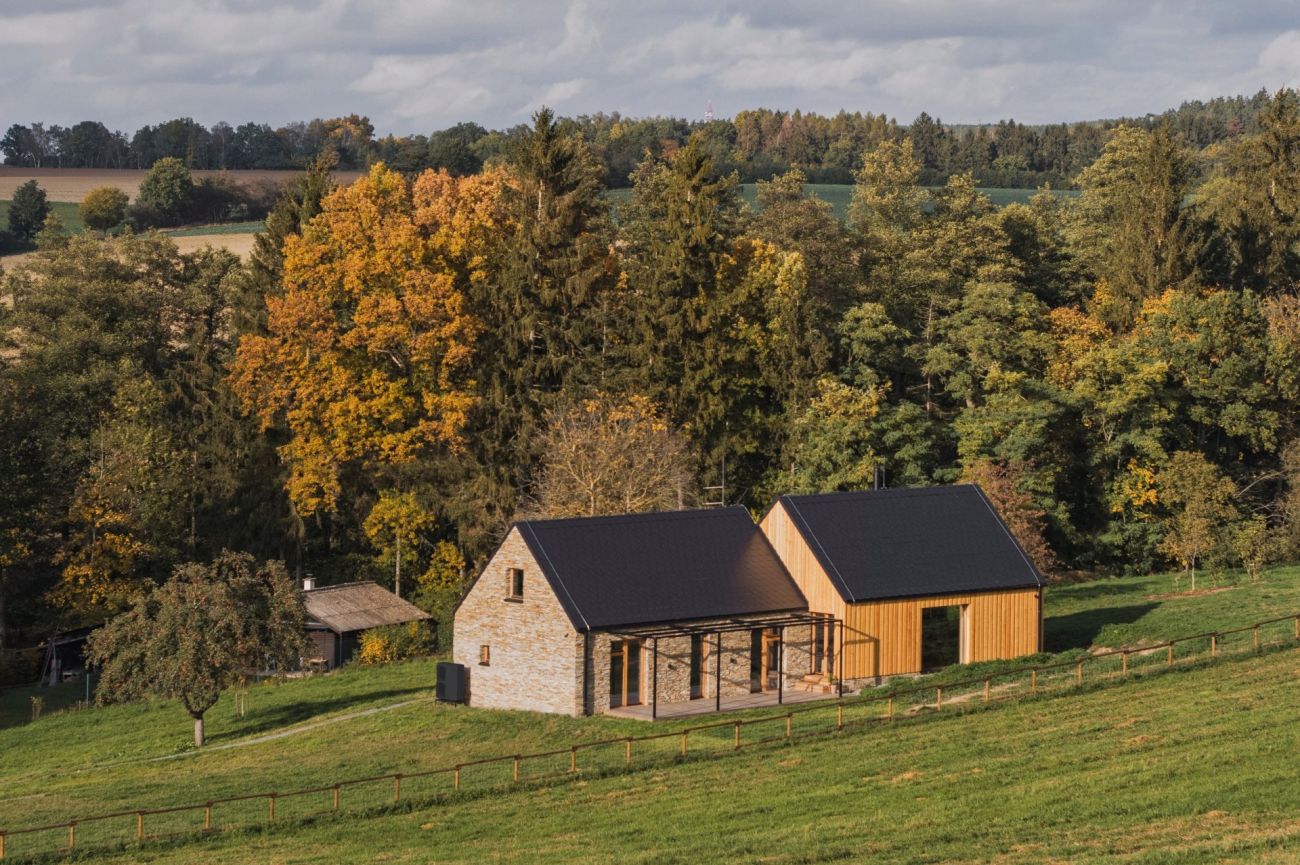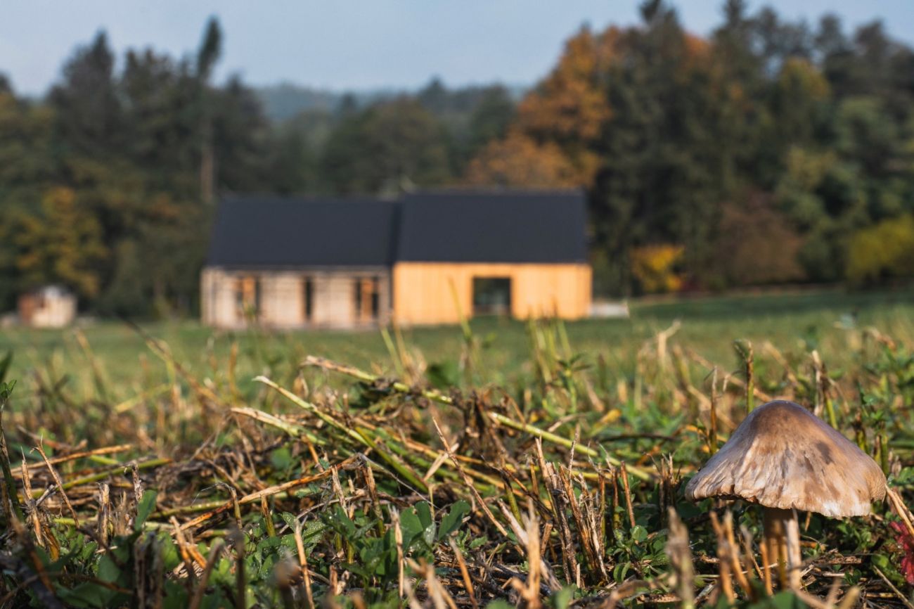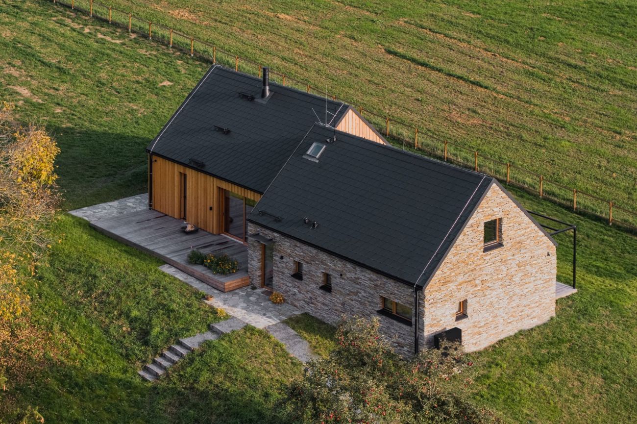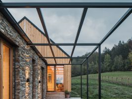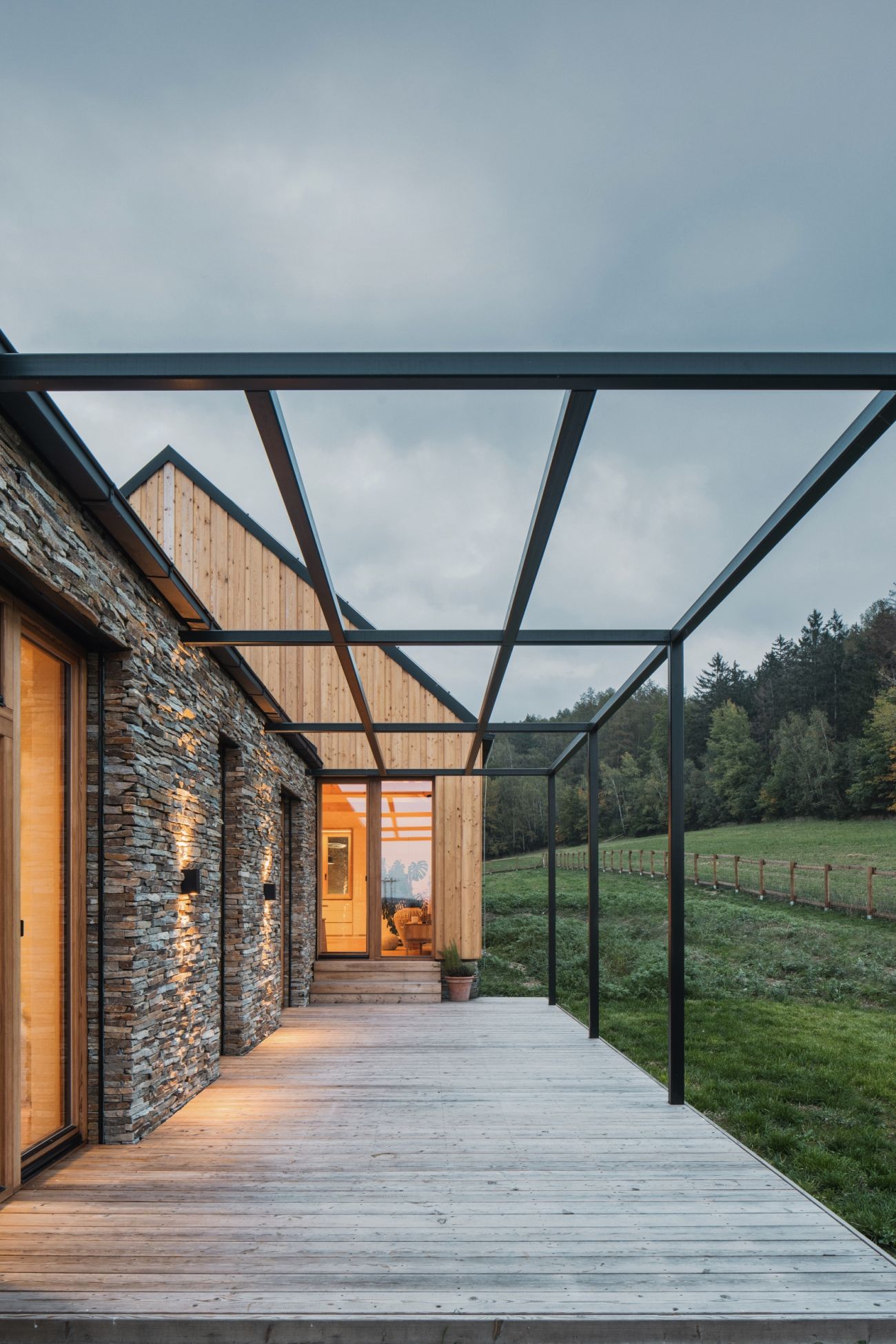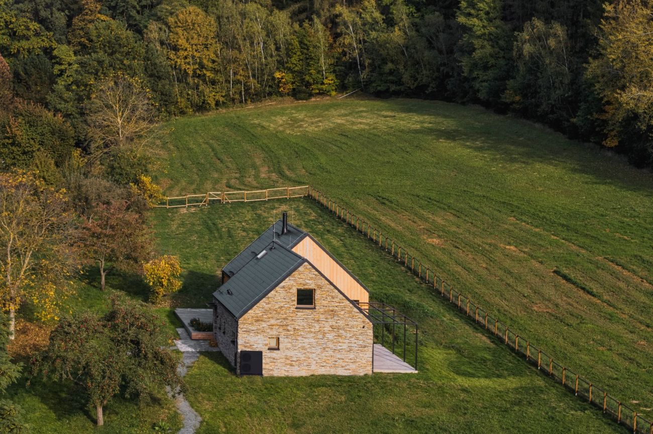 Kousek za Plzní se na louce v blízkosti lesa nachází menší rodinný dům, který by těžko mohl stát jinde. Stavba dokonale využívá atmosféru místa a přizpůsobuje se jí jak tvarem, tak i zvolenými materiály. Za návrhem stojí architekt Lukáš Janout, který zde vytvořil pro své klienty moderní bydlení.