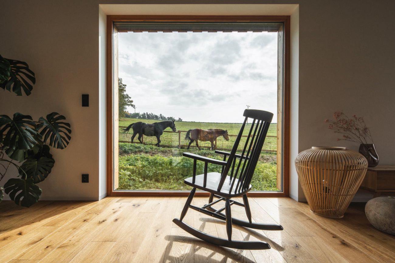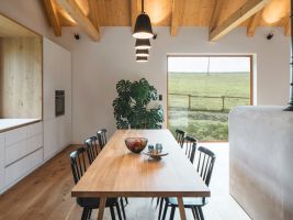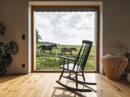 Všechny materiály v interiéru a exteriéru jsou navrženy jako přírodní s cílem maximálně podpořit ducha celé stavby.