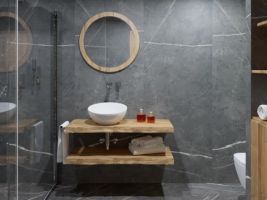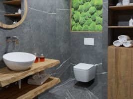 Jen v obýváku ale nezůstaneme a přesuneme se do koupelny, respektive do New Living Center, kde je koupelnám určeno hned několik pater. Nás zde zajímají obklady, zejména ty velkoformátové.
