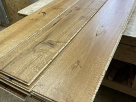 Po kuchyni se dokončují také obložky k bezfalcovým dveřím, které jsou vyrobeny z podlahoviny. „Jsou zde skryté panty, které mají úžasné 3D štelování a ve výsledku ty obložky a dveře tvoří naprosto nádherný komplet,“ komentuje za Wowood Robert Gross.