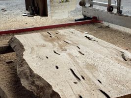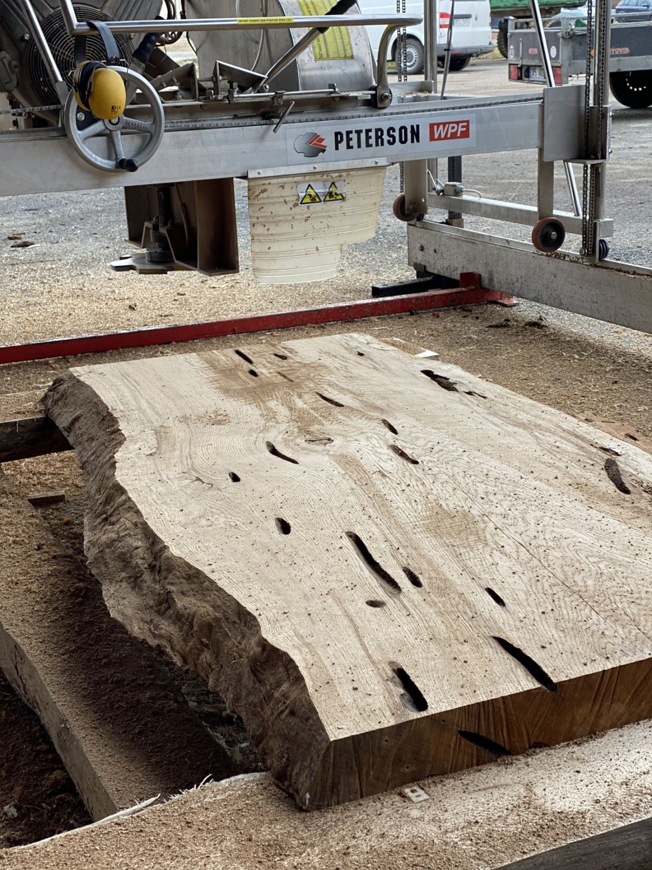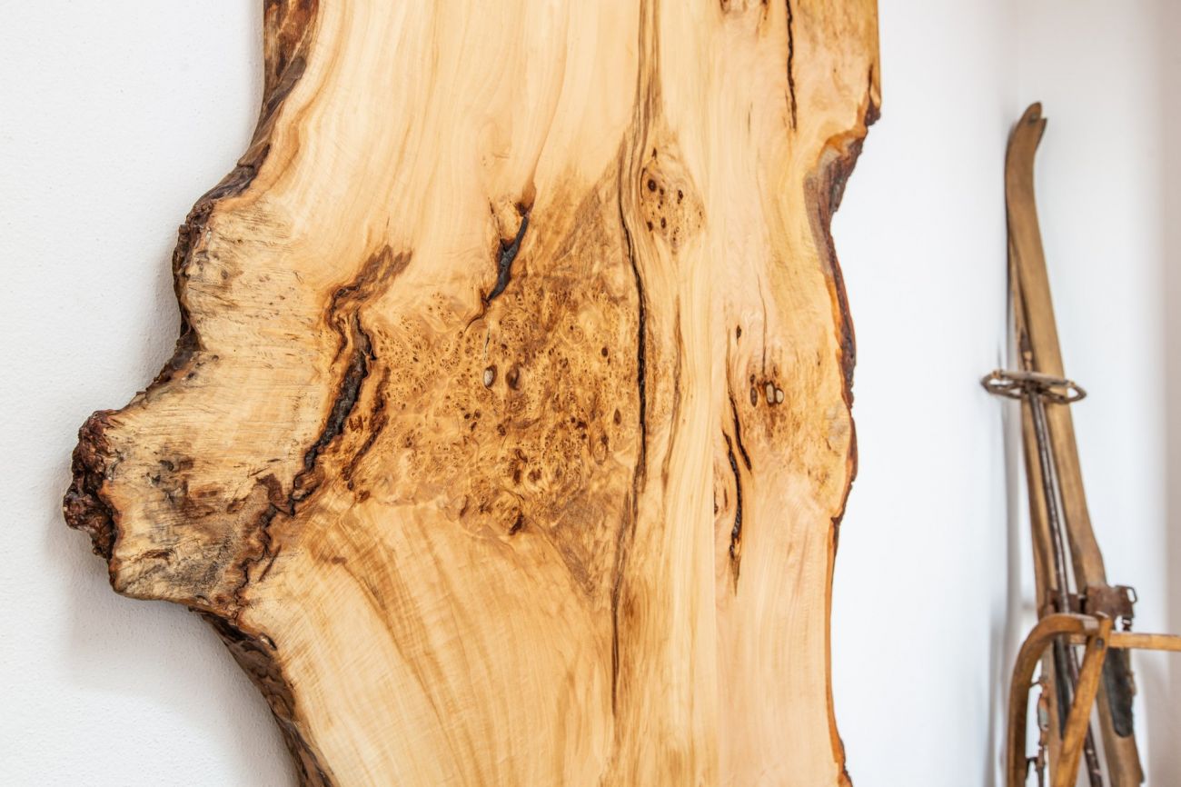 „Je to opět kus, ke kterému mám osobní vztah. Je to dřevo z obecního jasanu, který rostl u nás na vsi a soused mi povídal, že jako malý kluk do něj zatloukal hřebíky a my o padesát let později ty hřebíky řezali na pile a skřípali u toho zuby,“ vypráví Gross.
