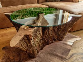 Tento kousek ze starého jilmu byl tak trochu dílem náhody. Původní masivní pařez totiž slouží jako konferenční stůl v obývacím pokoji. Když jej ve Wowoodu formátovali na správnou výšku, zbyl jim takovýto kousek a byla by přeci škoda ho vyhodit.