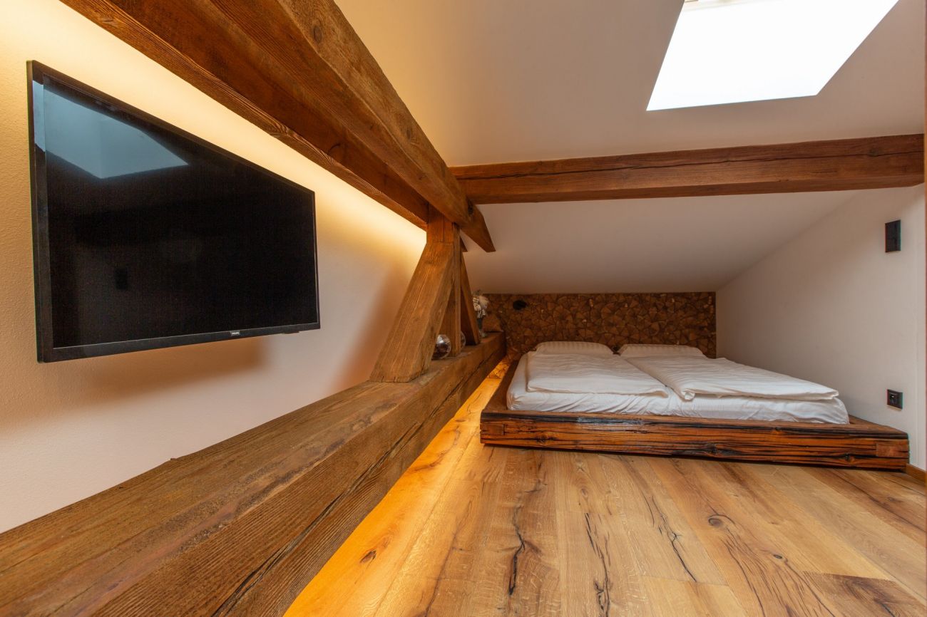 Psal se leden 2019, kdy jsme prvně vstoupili do zanedbané půdní části bývalého hotelu Javor. Na první pohled by asi nikdo netipoval, že se tento prostor může proměnit v něco unikátního. Stačí ale mít odvahu, nápad a mít se na koho obrátit, kdo je stejný blázen do designu. Díky odborníkům, jako je Robert Gross z Wowood, se interiér může pyšnit takovými designovými prvky, jako je konferenční stůl ze starého pařezu nebo zrcadlo zasazené do kmene stromu. Však o tom už se přesvědčte sami, zveme vás na prohlídku...