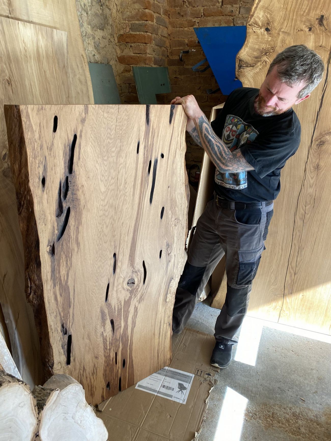 „Určitě bych stůl řešil s řemeslníky a nehledal ho nikde v nákupním centru. U nás chceme, aby s námi lidé byli u toho surového materiálu a aby viděli, z čeho ten stůl vzniká. Když to ti lidé cítí stejně, tak si myslím, že toho pak nelitují,“ konstatuje Robert Gross.