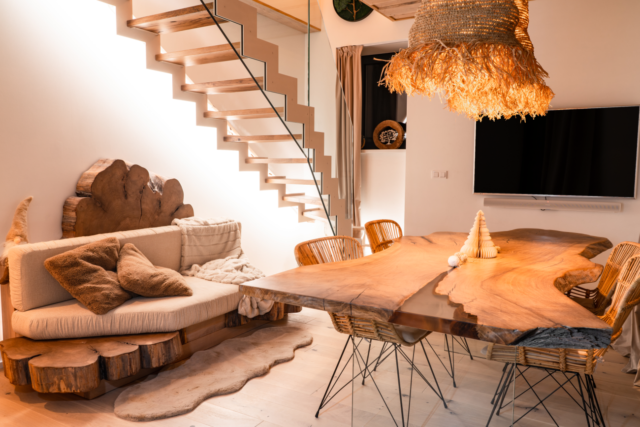 Jak již sám název napovídá, Yasmin Apartments propojuje nově zrekonstruované apartmány s historií tohoto místa, tedy hotelu Jasmín, který v minulosti poskytoval především zahraniční klientele luxusní ubytování v srdci Krkonoš. Původně se totiž jednalo o vyhlášený hotel z 80. let s bazénem a restaurací. Díky rekonstrukci zde nyní vznikl moderní dům plný stylových apartmánů. Vy můžete být už nyní svědky toho, co vše stálo za vznikem jednoho z nich - mezonetu s nádherným výhledem do okolní krajiny.