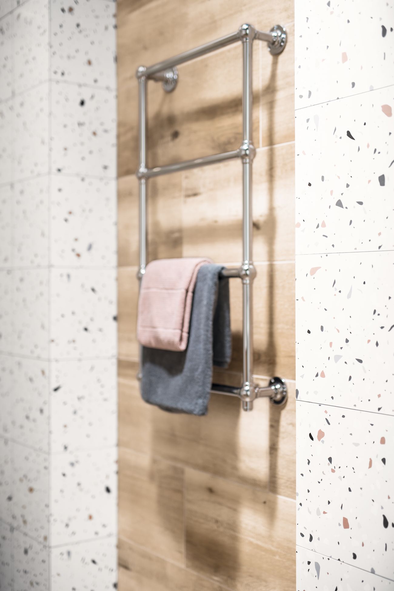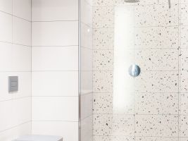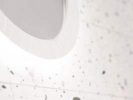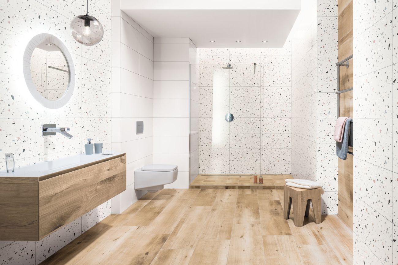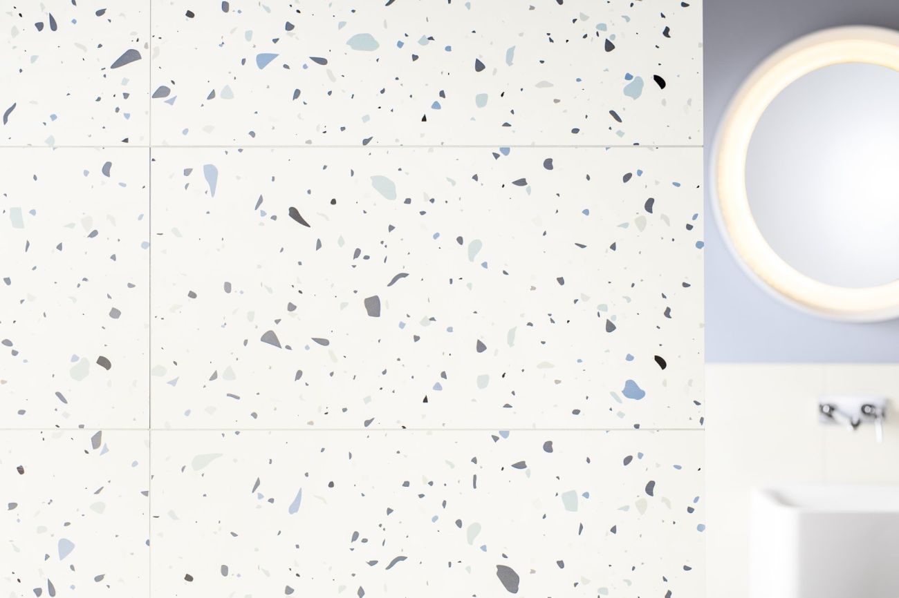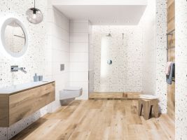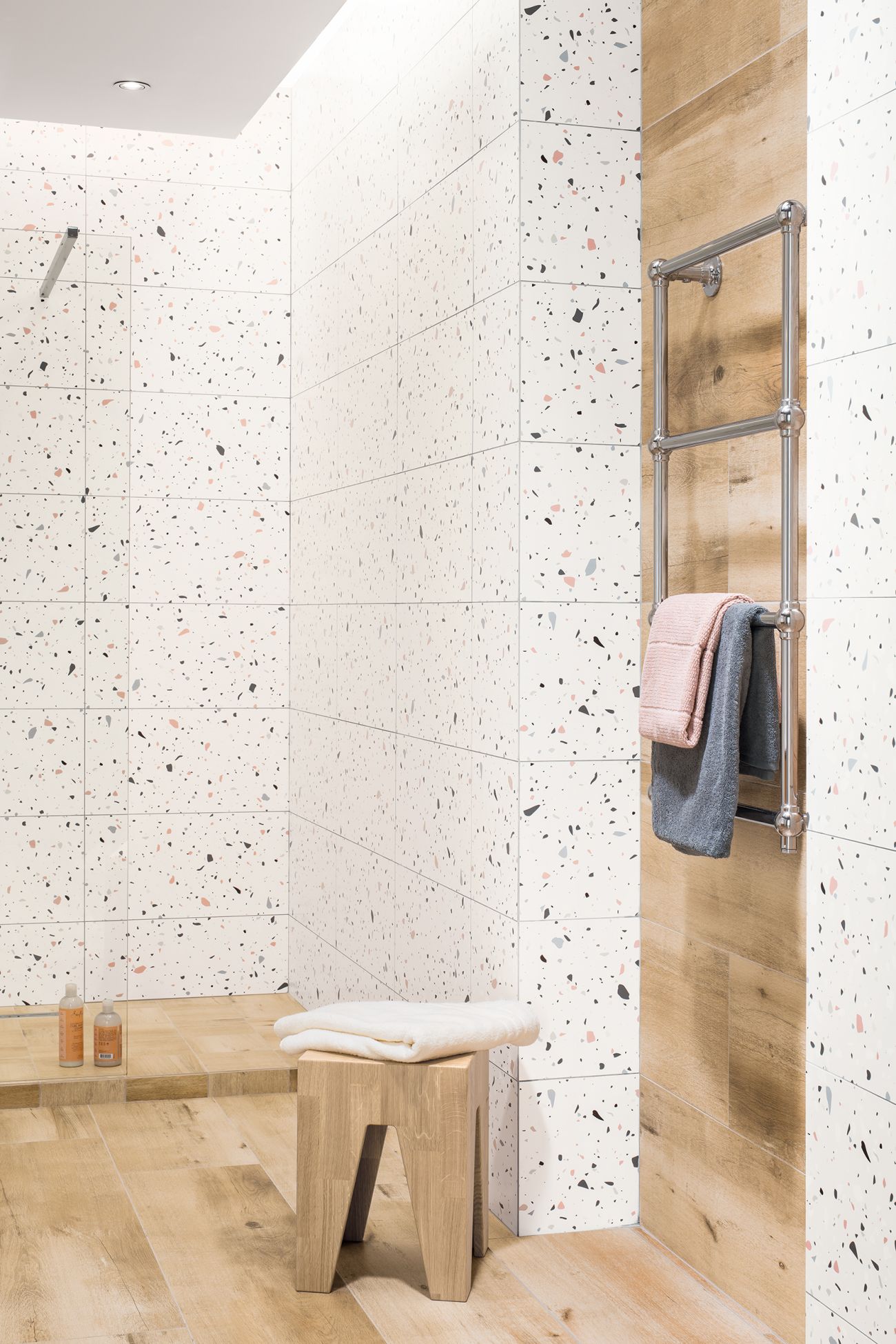 Obklad Spectra od společnosti RAKO působí v koupelně velmi čistě a elegantně. Předností rektifikovaných obkladů ve formátu 30 x 60 cm je široké využití. K sehnání jsou tři barevné varianty. Základ v barvě slonové kosti doplňují různé vzory s mixem barev. Výrobky jsou vhodné pro obkládání celé stěny, kde působí jako tapeta, nebo si s nimi můžete kreativně pohrát a vytvořit dekorativní prvky, a to i díky řezané mozaice 5 x 5 cm. Tuto sérii je vhodné doplnit podlahou v dekoru dřeva, např. série Saloon, Faro, či Board, pro více industriální vzhled poslouží dlaždice série Rebel nebo Blend.